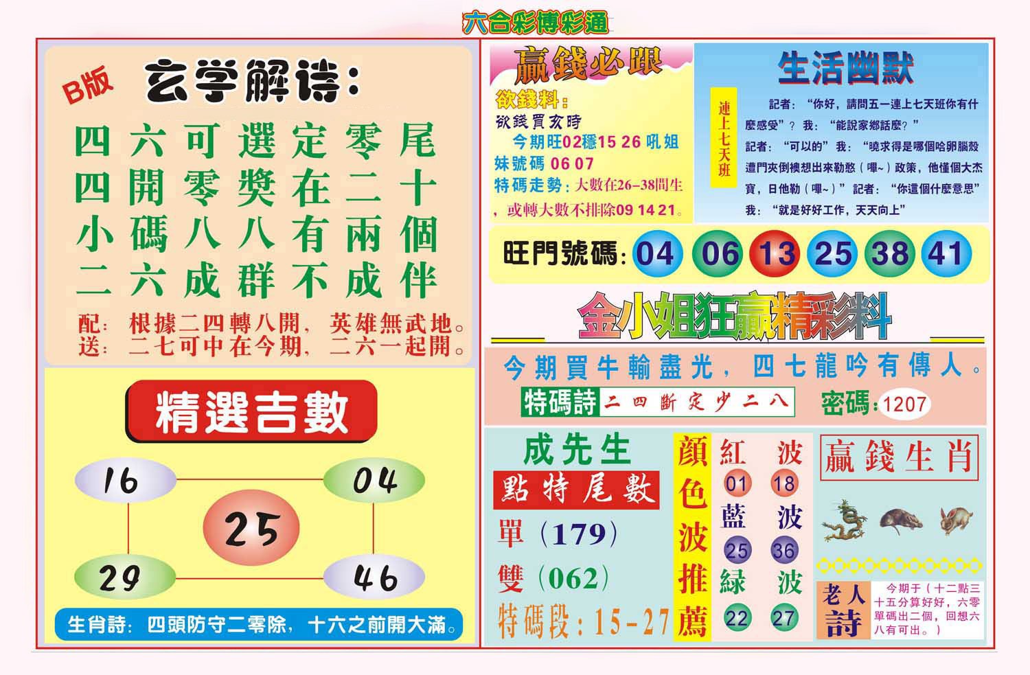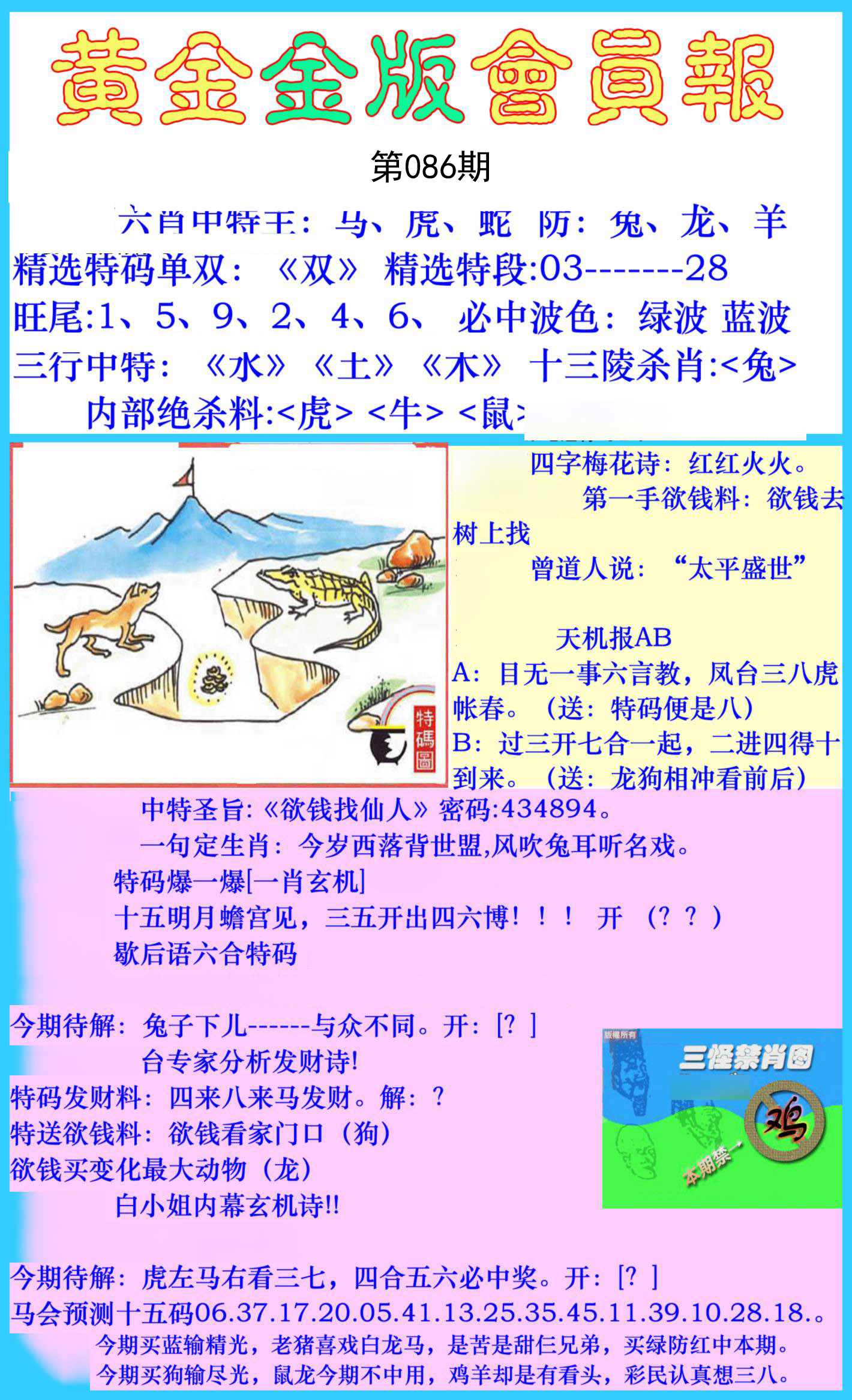 | 068期:三行中特【土水金】开:虎29准 |