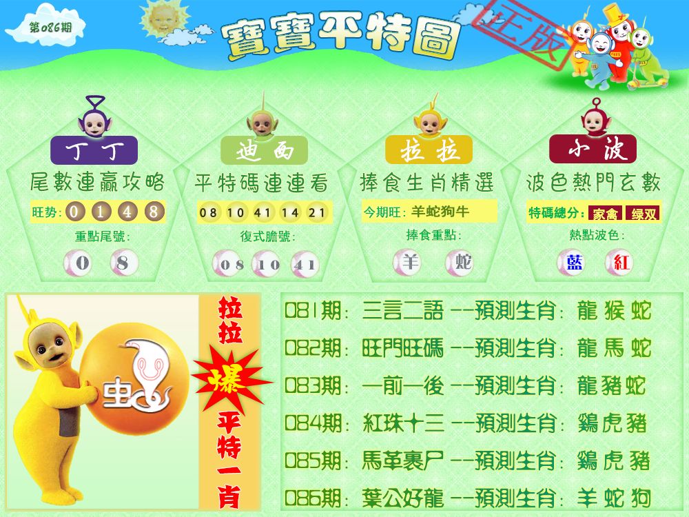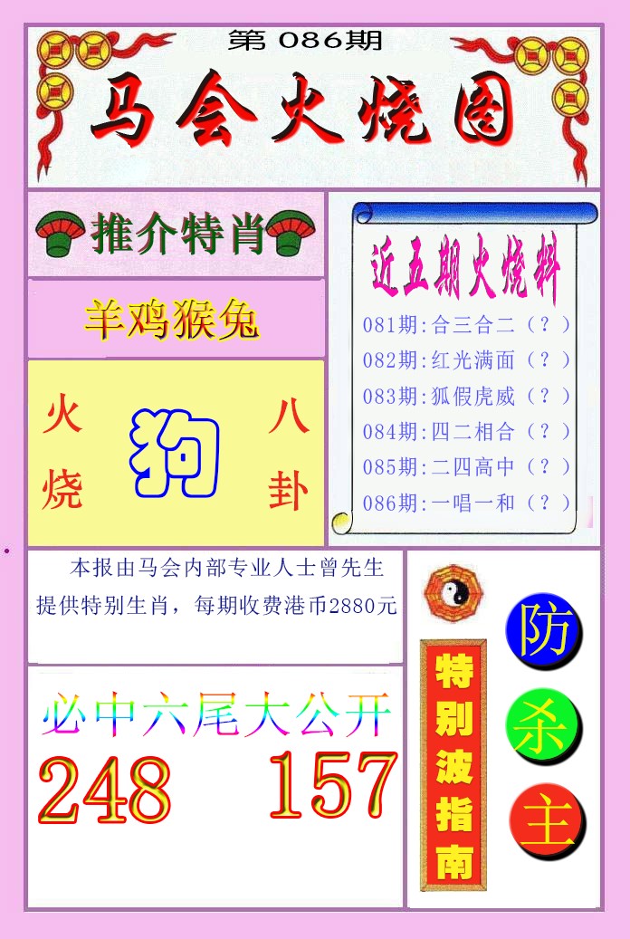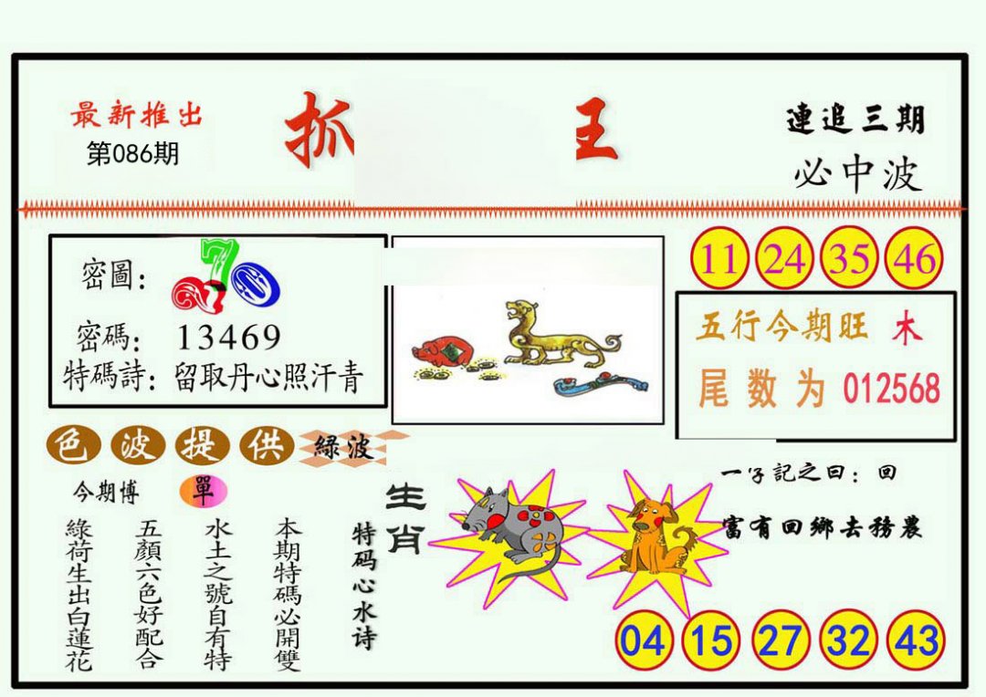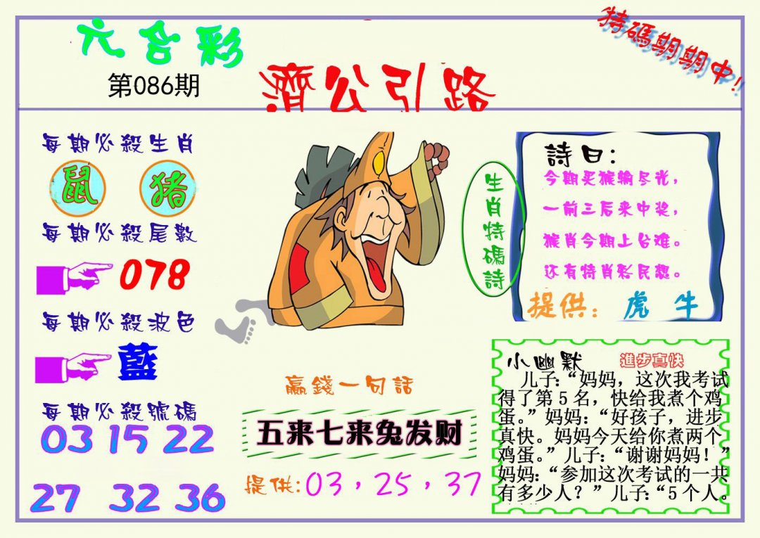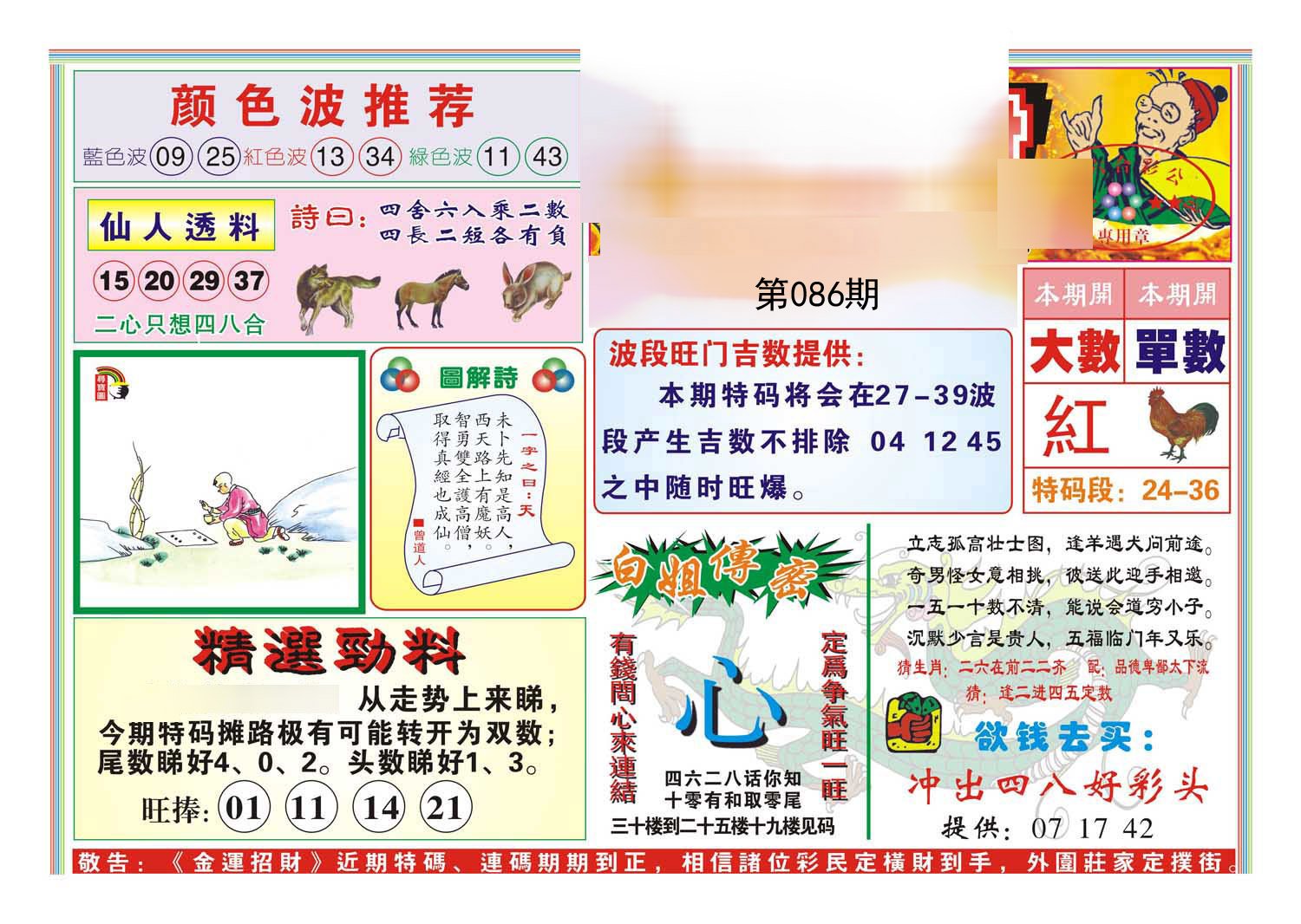 | 086期:《主攻:内幕规律平特肖:<龙>下50万》! | ||