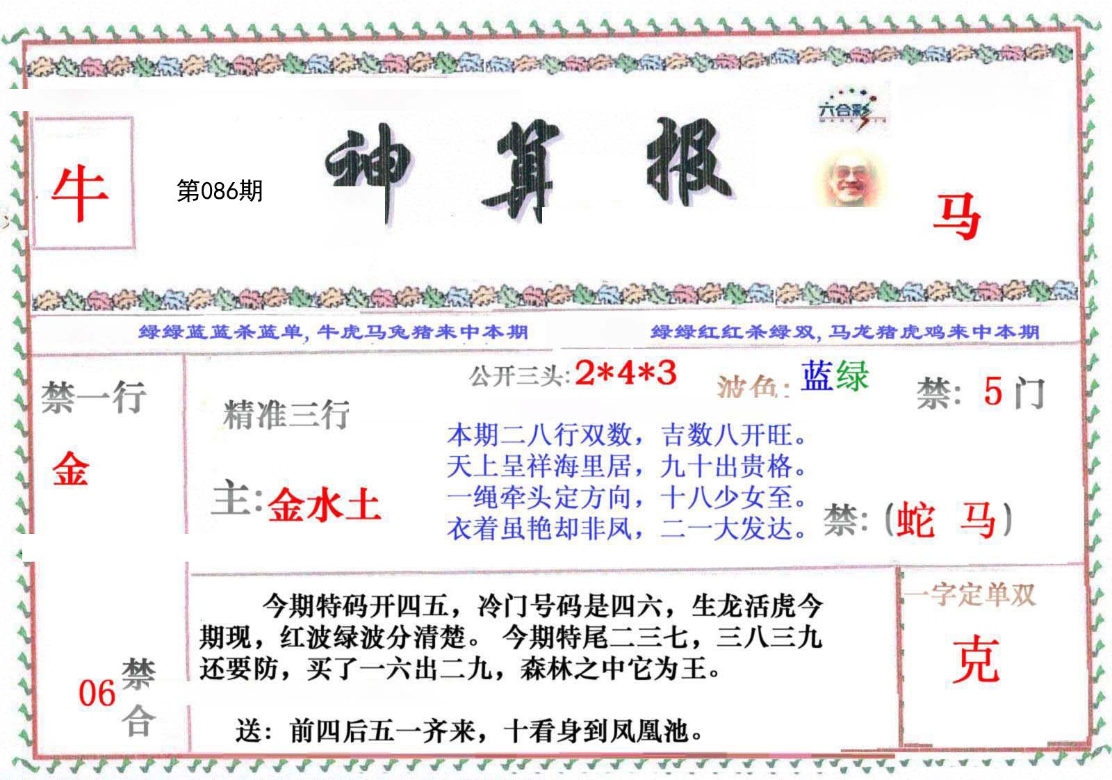 | 086期单双中特[单单单]开?00 |