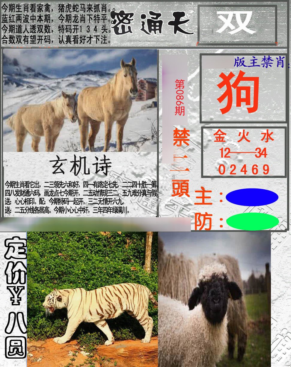 | 086期:(港澳台挂牌)平一肖【猪】开:?00 |